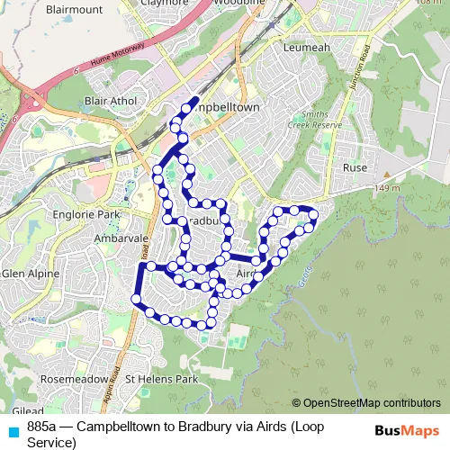 Click here to view the nearest 885a - Campbelltown to Bradbury via Airds (Loop Service) bus stop.