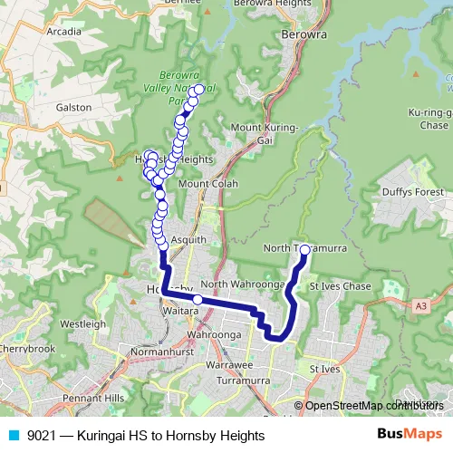 Bus 9021 - Kuringai HS to Hornsby Heights in Sydney: Stops & Timetable