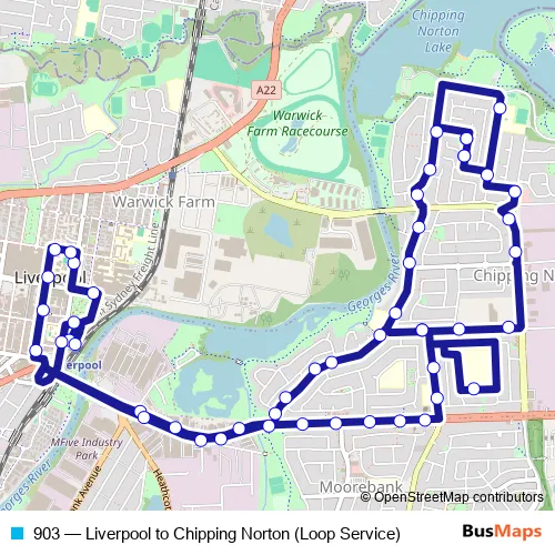 The first stop of the 903 bus route is Liverpool Station, Stand G and the last stop is Liverpool Station, Stand A. 903 (Liverpool to Chipping Norton (Loop Service)) is operational during everyday.