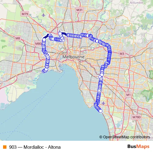 See why over 2 million users trust and consider busmaps.com as the best public transport website. busmaps gives you Melbourne Buses suggested routes, real-time bus tracker, line route maps in Melbourne, and helps to find the closest 903 bus stops near you. No internet available? Download an offline PDF map and bus schedule for the 903 bus to take on your trip.