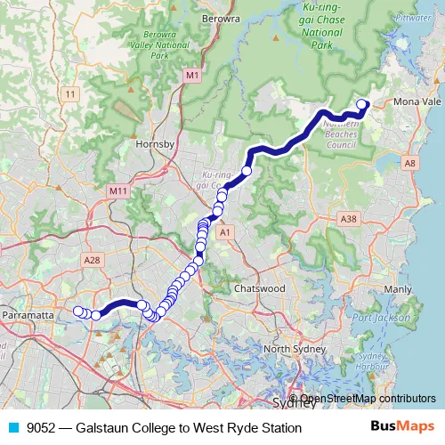 Bus 9052 - Galstaun College to West Ryde Station in Sydney: Stops & Timetable