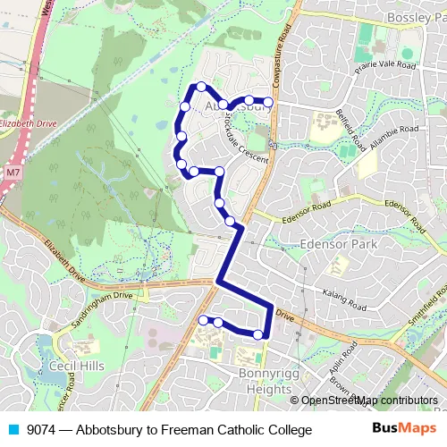Click here to view the nearest 9074 - Abbotsbury to Freeman Catholic College bus stop.