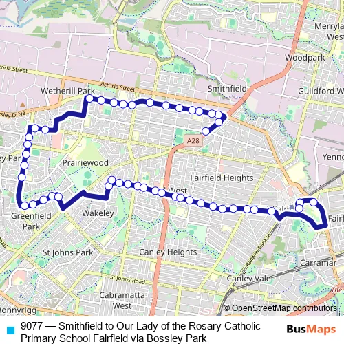 Bus 9077 - Smithfield to Our Lady of the Rosary Catholic Primary School Fairfield via Bossley Park: Full Schedule in Liverpool
