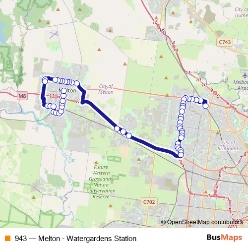 Bus 943 - Melton - Watergardens Station Schedule in Melbourne