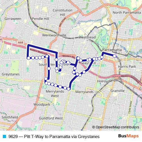 Bus 9629 - Pitt T-Way to Parramatta via Greystanes: Full Schedule in Parramatta