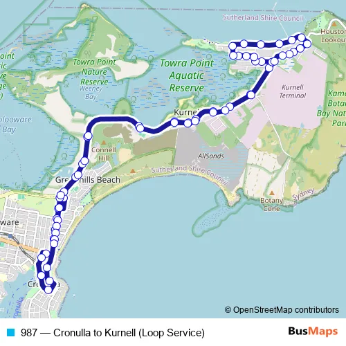 Click here to view the nearest 987 - Cronulla to Kurnell (Loop Service) bus stop.