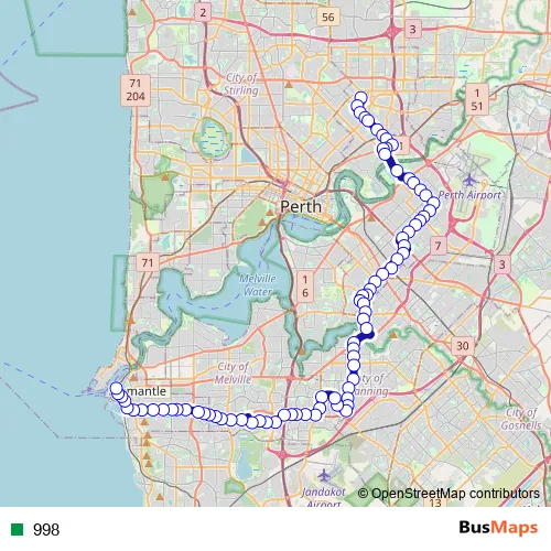 Bus 998 in Perth: Stops & Timetable