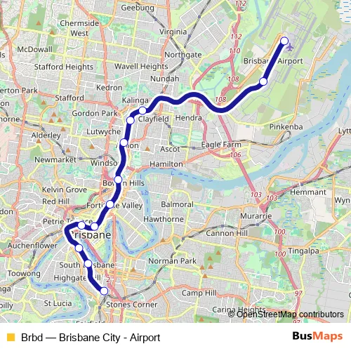 The first stop of the Brbd rail route is Boggo Road station, platform 3 and the last stop is Domestic Airport station, platform 1. Brbd (Brisbane City - Airport) is operational during on weekdays.