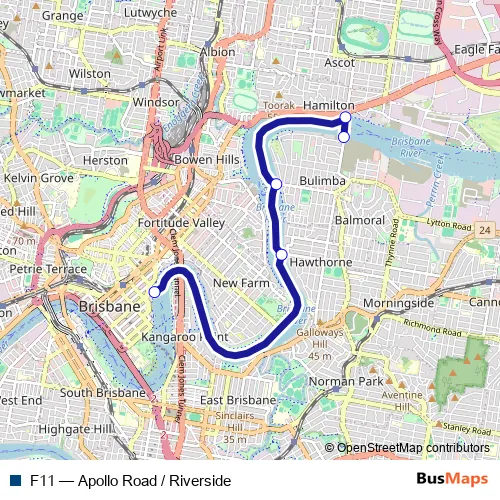 See why over 2 million users trust and consider busmaps.com as the best public transport website. busmaps gives you Brisbane Ferries suggested routes, real-time bus tracker, line route maps in Brisbane, and helps to find the closest F11 ferry stops near you. No internet available? Download an offline PDF map and bus schedule for the F11 ferry to take on your trip.