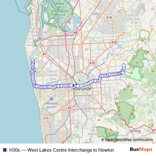 See why over 2 million users trust and consider busmaps.com as the best public transport website. busmaps gives you Adelaide Buses suggested routes, real-time bus tracker, line route maps in Adelaide, and helps to find the closest H30s bus stops near you. No internet available? Download an offline PDF map and bus schedule for the H30s bus to take on your trip.