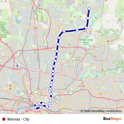 See why over 2 million users trust and consider busmaps.com as the best public transport website. busmaps gives you Melbourne Metro Lines suggested routes, real-time bus tracker, line route maps in Melbourne, and helps to find the closest Mernda - City metro stops near you. No internet available? Download an offline PDF map and bus schedule for the Mernda - City metro to take on your trip.