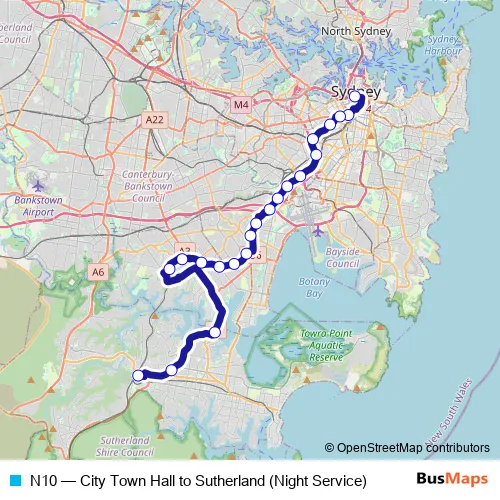 Click here to view the nearest N10 - City Town Hall to Sutherland (Night Service) bus stop.