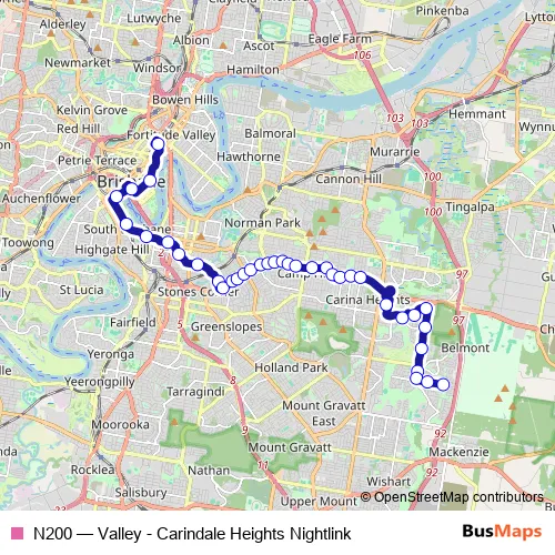 Click here to view the nearest N200 - Valley - Carindale Heights Nightlink bus stop.
