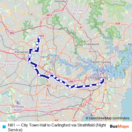 Click here to view the nearest N61 - City Town Hall to Carlingford via Strathfield (Night Service) bus stop.