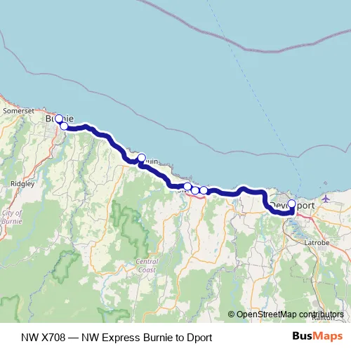 Click here to view the nearest NW X708 - NW Express Burnie to Dport bus stop.