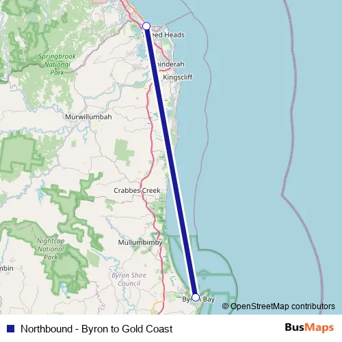 Northbound - Byron to Gold Coast (Byron Bay Buses)