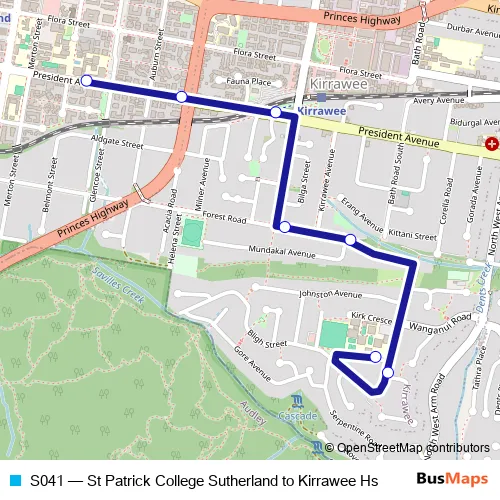 Bus S041 - St Patrick College Sutherland to Kirrawee Hs in Sydney: Stops & Timetable