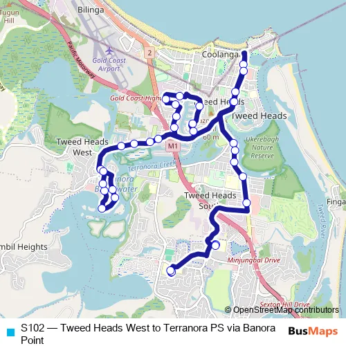 Click here to view the nearest S102 - Tweed Heads West to Terranora PS via Banora Point bus stop.