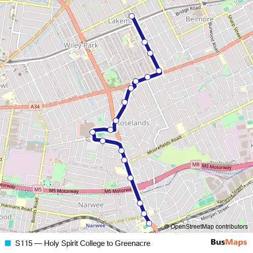 Click here to view the nearest S115 - Holy Spirit College to Greenacre bus stop.
