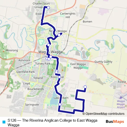 Click here to view the nearest S126 - The Riverina Anglican College to East Wagga Wagga bus stop.