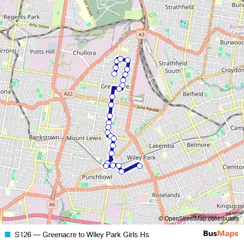 Click here to view the nearest S126 - Greenacre to Wiley Park Girls Hs bus stop.