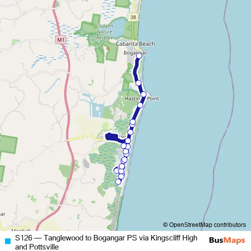 Bus S126 - Tanglewood to Bogangar PS via Kingscliff High and Pottsville in Pottsville: Stops & Timetable