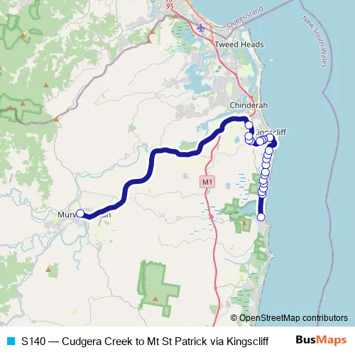 Bus S140 - Cudgera Creek to Mt St Patrick via Kingscliff: Full Schedule in Casuarina