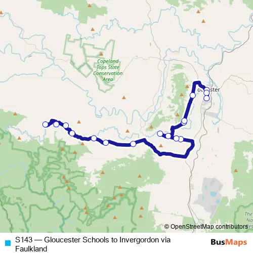 The first stop of the S143 bus route is 1953 Gloucester Tops Rd and the last stop is Gloucester High School, Ravenshaw St. S143 (Gloucester Schools to Invergordon via Faulkland) is operational during on weekdays.