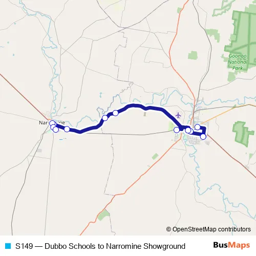 Click here to view the nearest S149 - Dubbo Schools to Narromine Showground bus stop.
