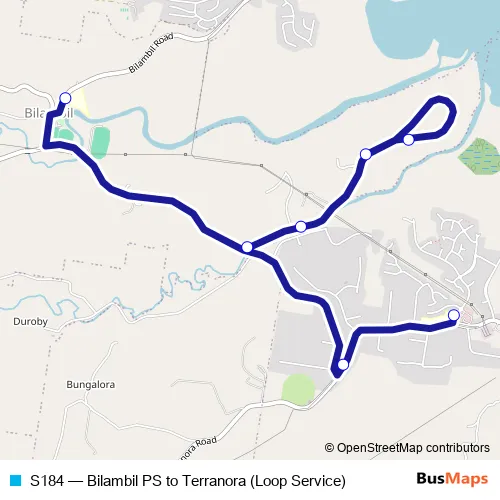 The first stop of the S184 bus route is Bilambil Public School, Bilambil Rd and the last stop is Terranora Public School, Henry Lawson Dr. S184 (Bilambil PS to Terranora (Loop Service)) is operational during on weekdays.