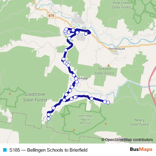 Bus S185 - Bellingen Schools to Brierfield: Full Schedule in Bellingen