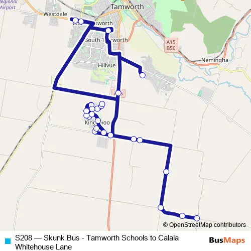 Bus S208 - Skunk Bus - Tamworth Schools to Calala Whitehouse Lane Schedule in Tamworth