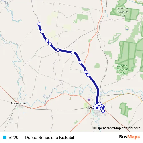 Click here to view the nearest S220 - Dubbo Schools to Kickabil bus stop.