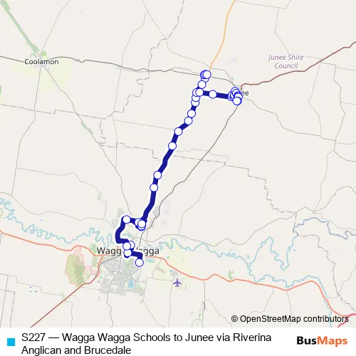Click here to view the nearest S227 - Wagga Wagga Schools to Junee via Riverina Anglican and Brucedale bus stop.