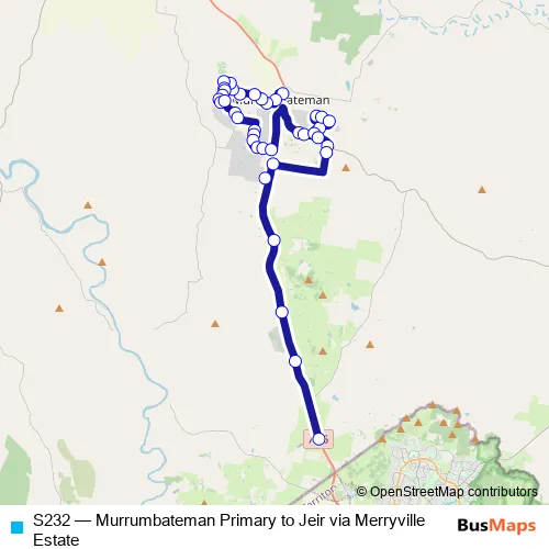 The first stop of the S232 bus route is Murrumbateman Primary School, Fairley St and the last stop is Barton Hwy After Spring Range Rd. S232 (Murrumbateman Primary to Jeir via Merryville Estate) is operational during on weekdays.