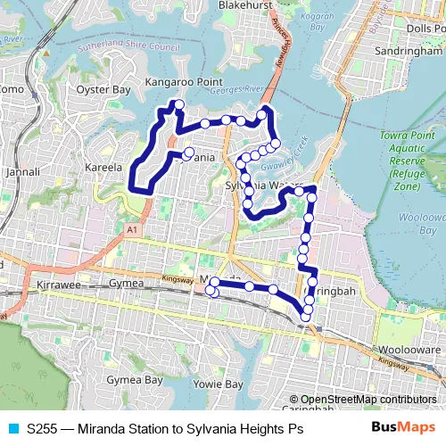 Click here to view the nearest S255 - Miranda Station to Sylvania Heights Ps bus stop.