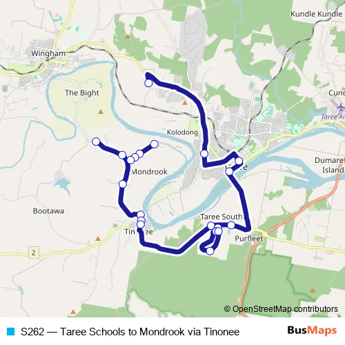 See why over 2 million users trust and consider busmaps.com as the best public transport website. busmaps gives you Tinonee Buses suggested routes, real-time bus tracker, line route maps in Tinonee, and helps to find the closest S262 bus stops near you. No internet available? Download an offline PDF map and bus schedule for the S262 bus to take on your trip.