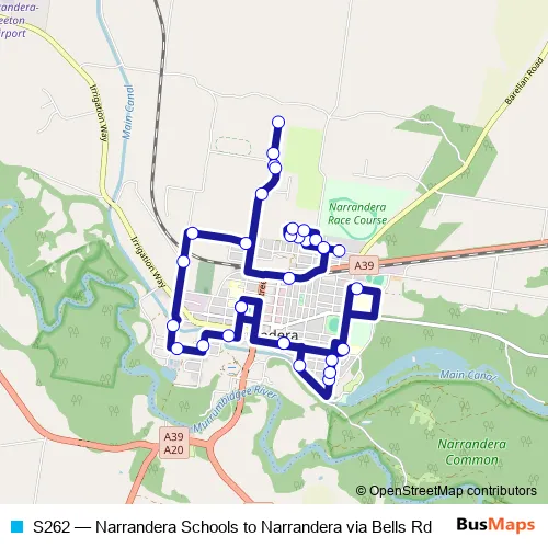 Click here to view the nearest S262 - Narrandera Schools to Narrandera via Bells Rd bus stop.