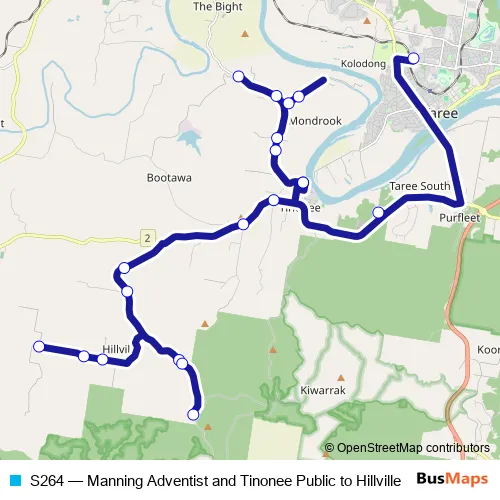 Click here to view the nearest S264 - Manning Adventist and Tinonee Public to Hillville bus stop.