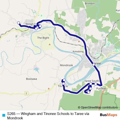 Click here to view the nearest S265 - Wingham and Tinonee Schools to Taree via Mondrook bus stop.