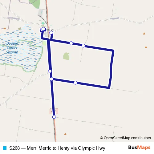 Click here to view the nearest S268 - Merri Merric to Henty via Olympic Hwy bus stop.