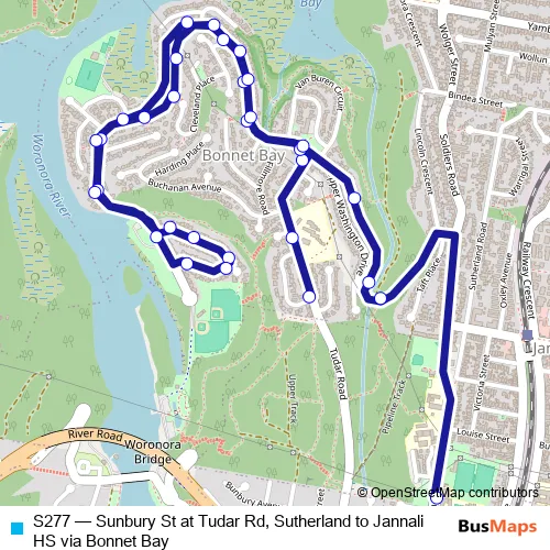 Click here to view the nearest S277 - Sunbury St at Tudar Rd, Sutherland to Jannali HS via Bonnet Bay bus stop.
