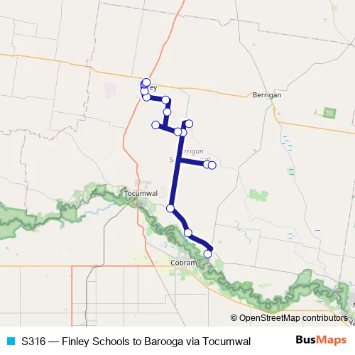 Click here to view the nearest S316 - Finley Schools to Barooga via Tocumwal bus stop.