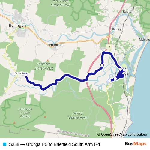 Click here to view the nearest S338 - Urunga PS to Brierfield South Arm Rd bus stop.