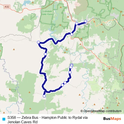 The first stop of the S358 bus route is Hampton Public School, Bindo Rd and the last stop is Donald St After Union St. S358 (Zebra Bus - Hampton Public to Rydal via Jenolan Caves Rd) is operational during on weekdays.