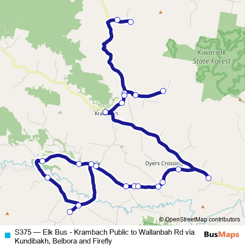 Click here to view the nearest S375 - Elk Bus - Krambach Public to Wallanbah Rd via Kundibakh, Belbora and Firefly bus stop.