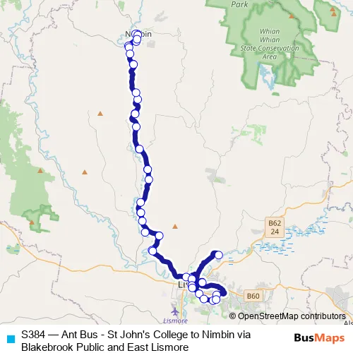 Click here to view the nearest S384 - Ant Bus - St John's College to Nimbin via Blakebrook Public and East Lismore bus stop.