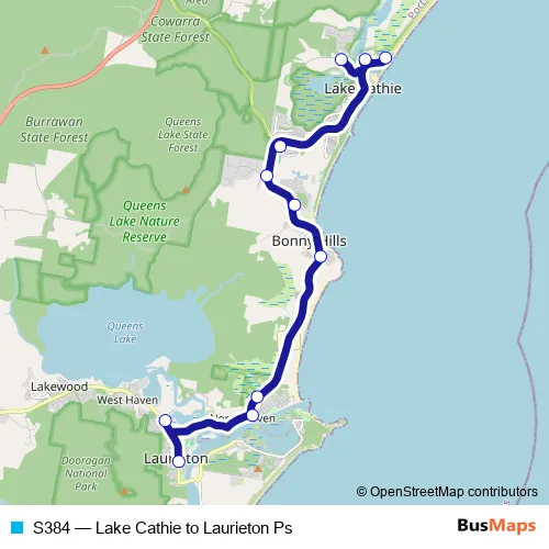 Click here to view the nearest S384 - Lake Cathie to Laurieton Ps bus stop.