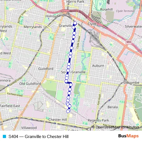 Bus S404 - Granville to Chester Hill in Parramatta: Stops & Timetable