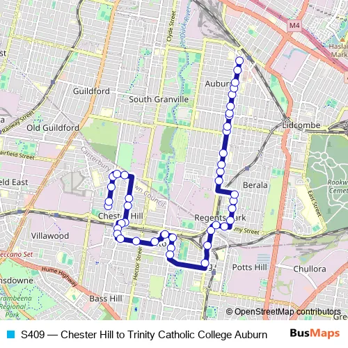 Bus S409 - Chester Hill to Trinity Catholic College Auburn: Full Schedule in Parramatta